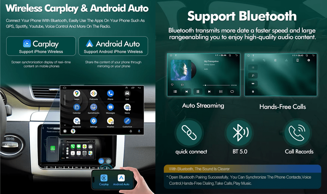 - Bluetooth: 5.1 QUALCOM (Med innebygd Bluetooth kan du koble til mobiltelefonen og ringe og svare på anrop via bilsystemet)