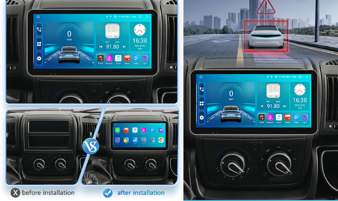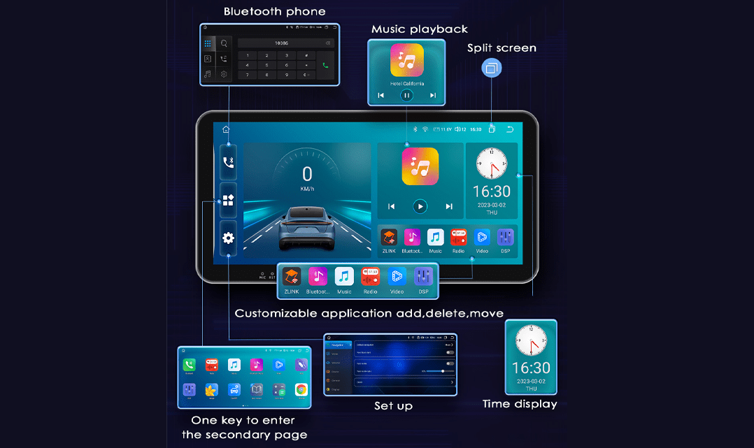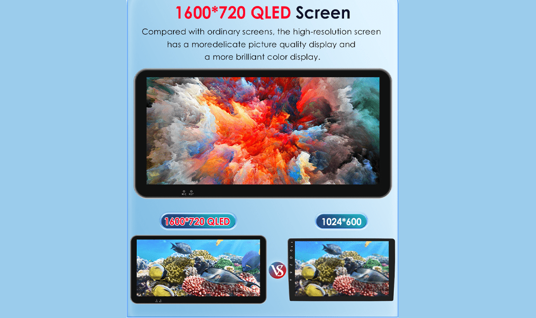 Skjerm og oppløsning: 10.33″ QLED HD Touchskjerm 1600* 720