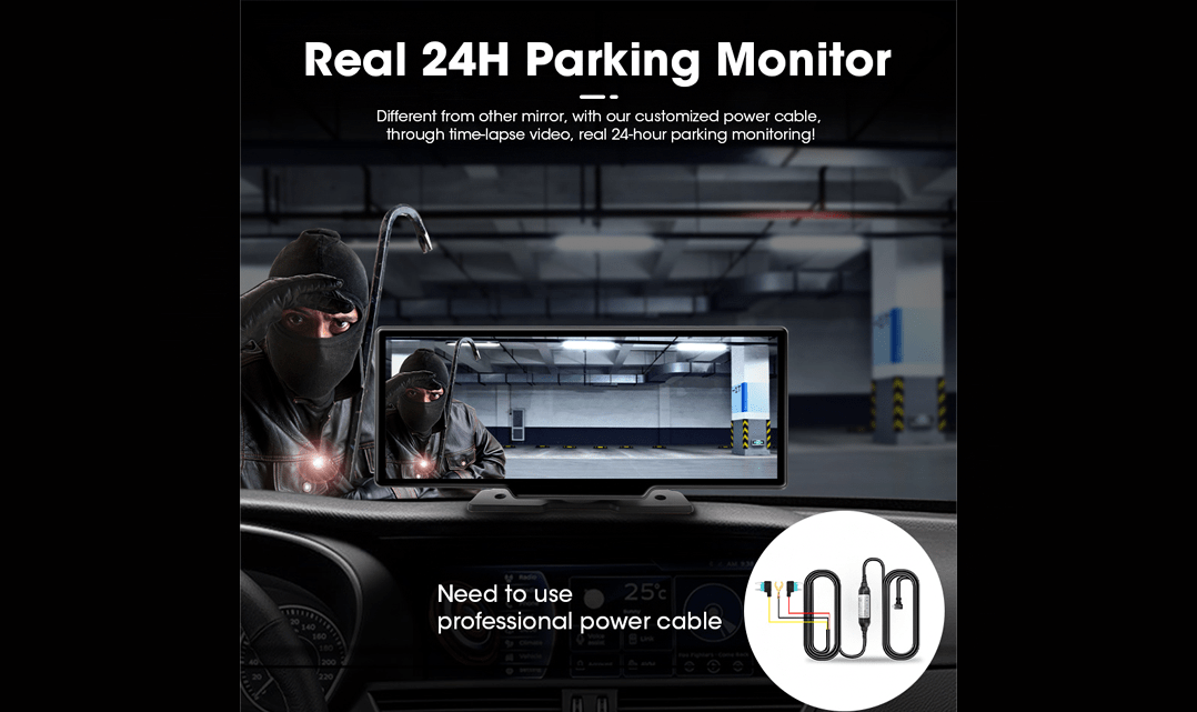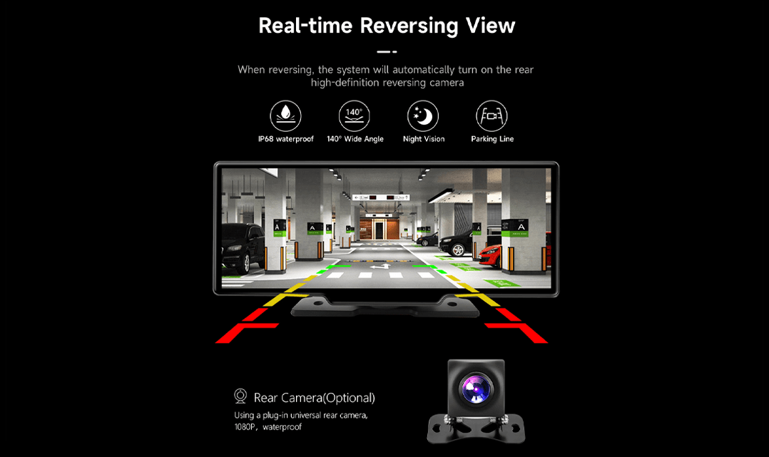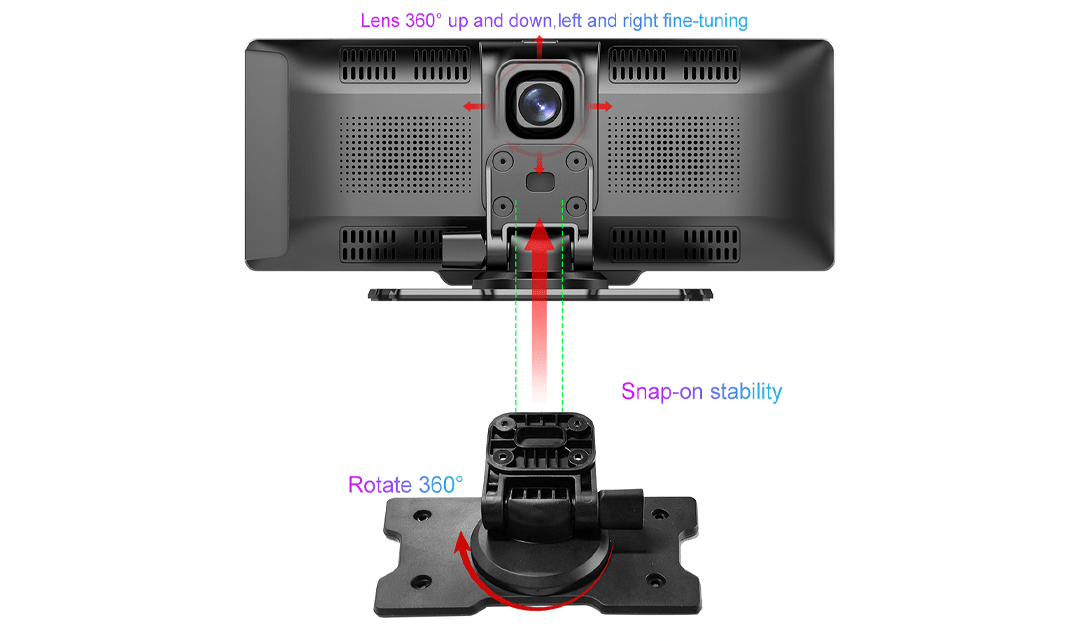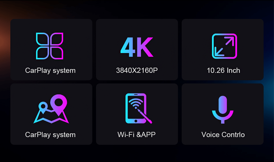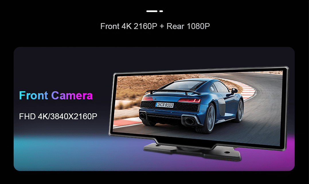 ????【4K justerbart Front Dash-kamera】 Spilleren er utstyrt med et HD 4K (3840×2160) Front Dash-kamera som kommer med HDR-funksjon som automatisk kan balansere belysningen i lyse og mørke områder, og gir et mye klarere bilde. Kameraet kan også enkelt justeres 360° for å bli et babykamera som observerer situasjonen til barnet i baksetet på bilen, eller kjæledyret ditt etc. Også tilgang til 24H Park-recordfunksjon (Kontakt oss da før kjøp)