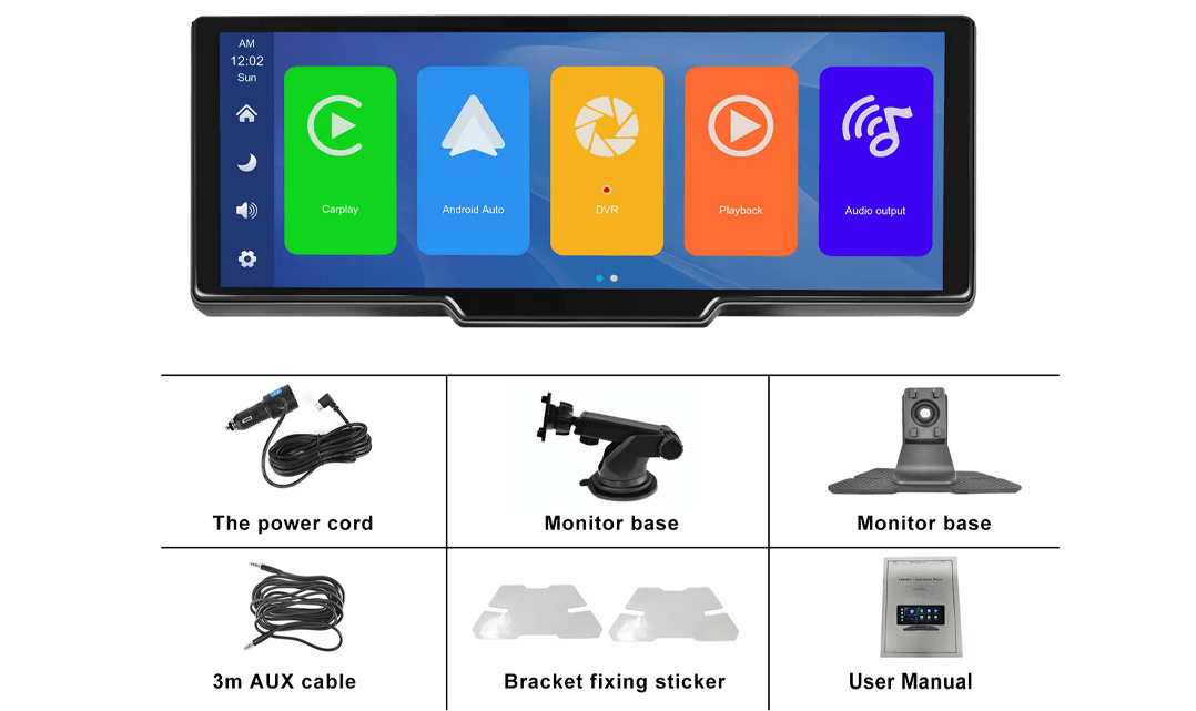 ????【Enkel å installere】Vår AZOM DAX3-skjerm festes enkelt med det medfølgende stativ og monteringsklistremerkene/stickers.