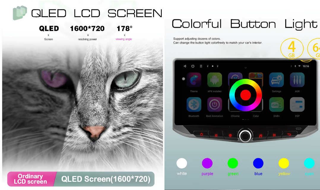 Skjerm og oppløsning: 10.88″ QLED HD Touchskjerm 1600* 720