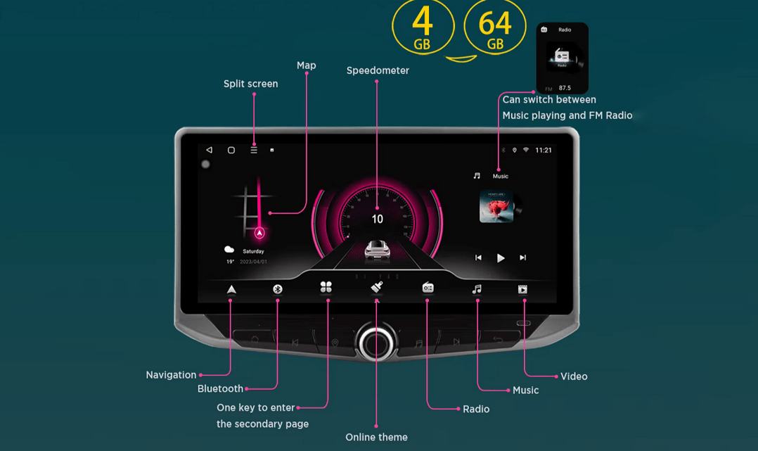 – NYHET! AZOM XBO PLUS med STOR SKJERM, ANDROID AUTO & CARPLAY TRÅDLØST – 8x OCTA-CORE 2.0GHz – 10.88″ QLED HD 1600 * 720 berøringsskjerm – NORSKE MENYER!